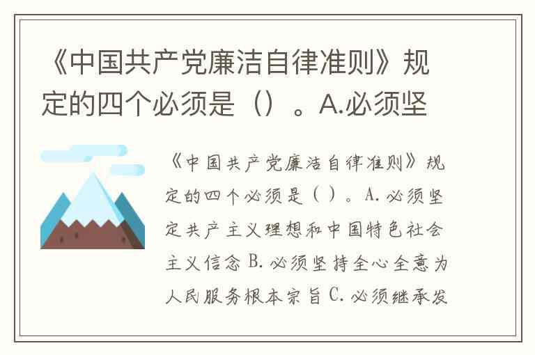 《中国共产党廉洁自律准则》规定的四个必须是()。A.必须坚定共产主义理想和中国特色社会主义信念 B.必须坚持全心全意为人民服务根本宗旨 C.必须继承发扬党的优良传统和作风 D.必须自觉培养高尚道德情操