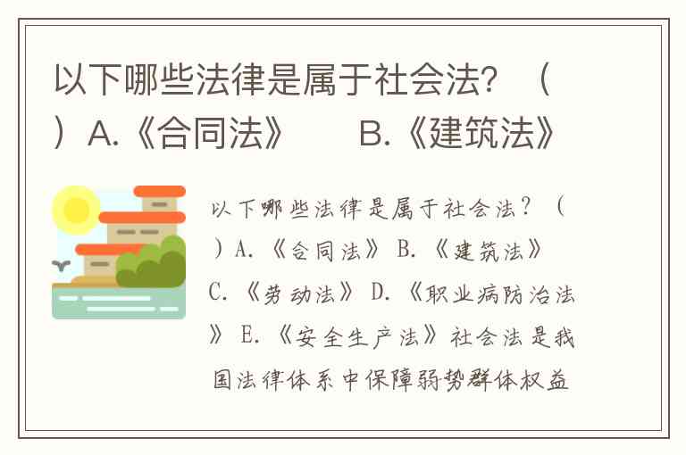 以下哪些法律是属于社会法?()A.《合同法》 B.《建筑法》 C.《劳动法》 D.《职业病防治法》 E.《安全生产法》