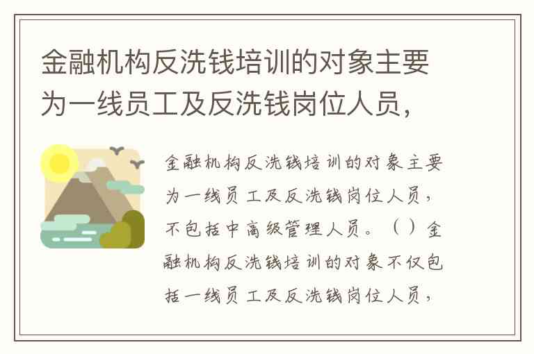 金融机构反洗钱培训的对象主要为一线员工及反洗钱岗位人员,不包括中高级管理人员。()