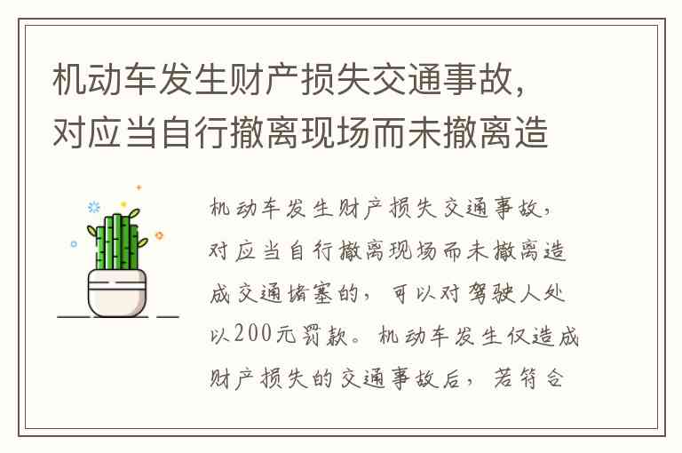 机动车发生财产损失交通事故,对应当自行撤离现场而未撤离造成交通堵塞的,可以对驾驶人处以200元罚款。