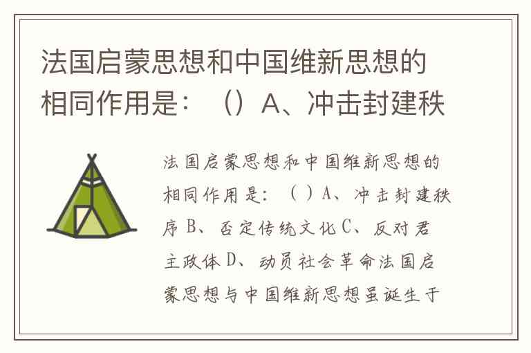 法国启蒙思想和中国维新思想的相同作用是:()A、冲击封建秩序 B、否定传统文化 C、反对君主政体 D、动员社会革命