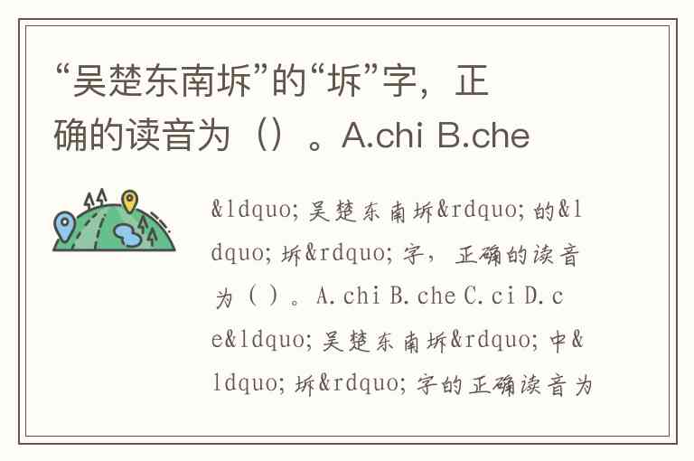 “吴楚东南坼”的“坼”字,正确的读音为()。A.chi B.che C.ci D.ce
