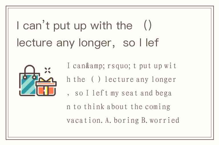 I can’t put up with the ()lecture any longer,so I left my seat and began to think about the coming vacation.A.boring B.worried C.bored D.restless