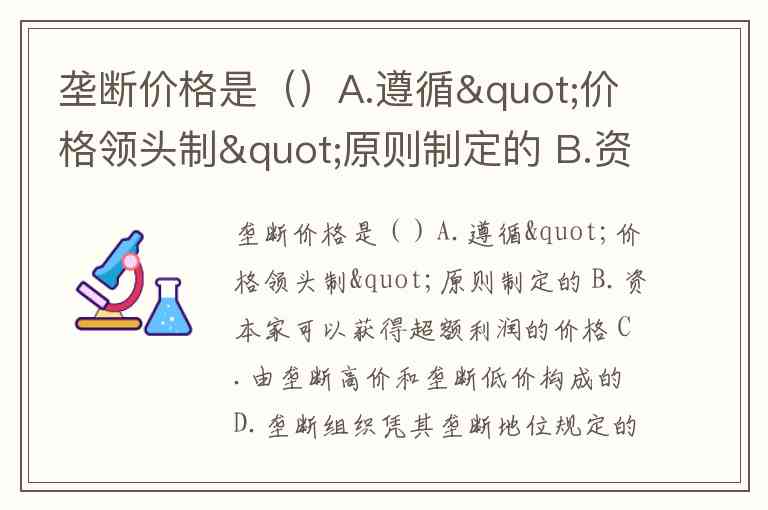 D正确:其本质是“垄断组织凭其垄断地位规定的市场价格”,而非市场竞争形成,这一定义在多个权威解释中一致出现。