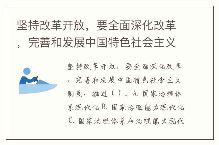 坚持改革开放,要全面深化改革,完善和发展中国特色社会主义制度,推进()。A.国家治理体系现代化 B.国家治理能力现代化 C.国家治理体系和治理能力现代化 D.社会治理体系和治理能力现代化