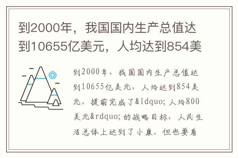 2000年我国实现的小康,是“低水平、不全面、发展不平衡”的总体小康。这一判断既肯定了经济总量突破带来的民生改善,也揭示了当时发展阶段的深层特征。