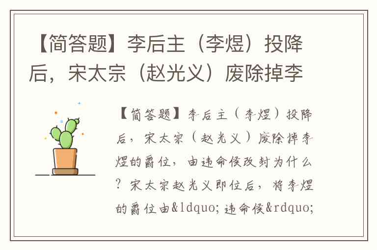 【简答题】李后主(李煜)投降后,宋太宗(赵光义)废除掉李煜的爵位,由违命侯改封为什么?