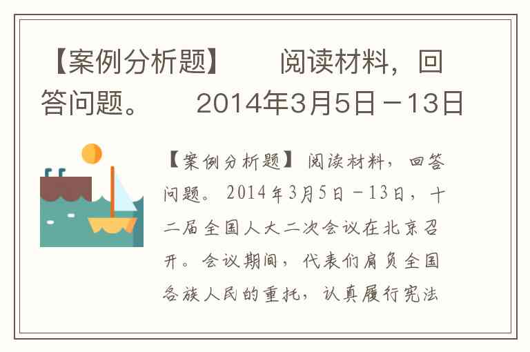 【案例分析题】 阅读材料,回答问题。 2014年3月5日-13日,十二届全国人大二次会议在北京召开。会议期间,代表们肩负全国各族人民的重托,认真履行宪法和法律赋予的职责,围绕大局、讲求实效,畅所欲言、集思广益,审议并通过了政府工作报告、全国人大常委会工作报告、最高人民法院和最高人民检察工作报告和国民经济及社会发展规划等决议。会议的胜利召开,凝聚了共识,明确了任务,坚定了信心,必将进一步鼓舞全国各族人民更加奋发有为地投身建设中国特色社会主义伟大事业。 上图为我国中央国家机构组织系统图。请分别写出①②③代表我国什么国家机关?