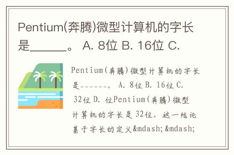 Pentium(奔腾)微型计算机的字长是______。 A. 8位 B. 16位 C. 32位 D. 位