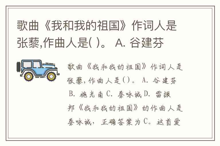 歌曲《我和我的祖国》作词人是张藜,作曲人是( )。 A. 谷建芬 B. 施光南 C. 秦咏诚 D. 雷振邦