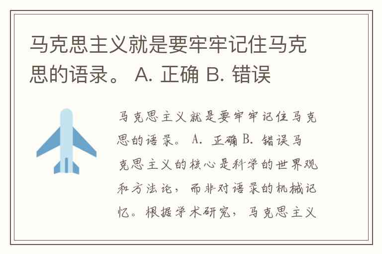 马克思主义就是要牢牢记住马克思的语录。 A. 正确 B. 错误