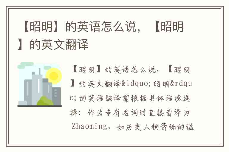 “昭明”的英语翻译需根据具体语境选择:作为专有名词时直接音译为 Zhaoming,如历史人物萧统的谥号“昭明太子”或《昭明文选》中的“昭明”;表示“光明、显著”的形容词含义时,可译为 clear 或 obvious。