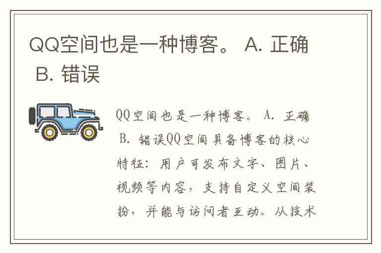 QQ空间也是一种博客。 A. 正确 B. 错误