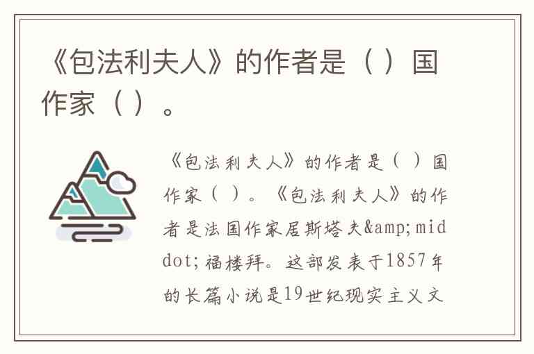 《包法利夫人》的作者是法国作家居斯塔夫·福楼拜。这部发表于1857年的长篇小说是19世纪现实主义文学的里程碑,以外省医生妻子艾玛·包法利的悲剧人生为主线,深刻批判了资产阶级的虚伪道德与浪漫主义幻想的破灭。福楼拜以其“一词说”的创作理念——追求每个词的绝对准确——奠定了现代小说的写作范式,作品中对细节的极致考究和对人物心理的细腻刻画,使其至今仍是世界文学经典。