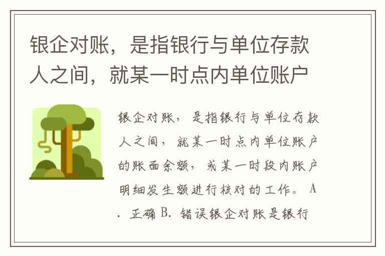 银企对账是银行与单位存款人之间核对账户信息的重要工作,其核心内容既包括特定时点的账面余额核对,也涵盖特定时段的明细发生额核对。这一过程旨在确保双方记录一致,防范资金风险。该表述正确,答案选A。