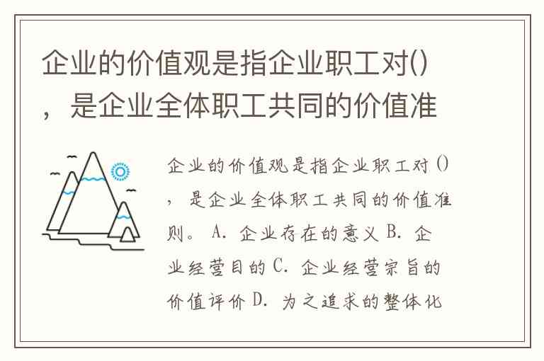 企业的价值观是指企业职工对(),是企业全体职工共同的价值准则。 A. 企业存在的意义 B. 企业经营目的 C. 企业经营宗旨的价值评价 D. 为之追求的整体化、差异化的群体意识 E. 企业的经营哲学