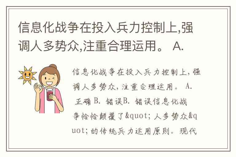 信息化战争在投入兵力控制上,强调人多势众,注重合理运用。 A. 正确 B. 错误