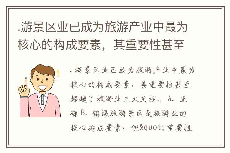 .游景区业已成为旅游产业中最为核心的构成要素,其重要性甚至超越了旅游业三大支柱。 A. 正确 B. 错误