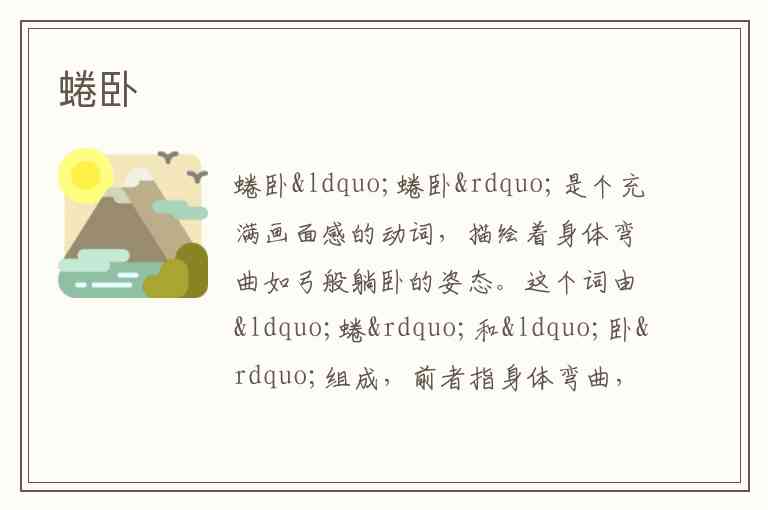 “蜷卧”是个充满画面感的动词,描绘着身体弯曲如弓般躺卧的姿态。这个词由“蜷”和“卧”组成,前者指身体弯曲,后者意为躺倒,组合起来便是“蜷缩卧倒”。无论是寒风中瑟缩的流浪狗,还是冬夜里怕冷的人,都可能不自觉地采取这种姿势,仿佛要把自己团成一个更紧凑、更安全的存在。