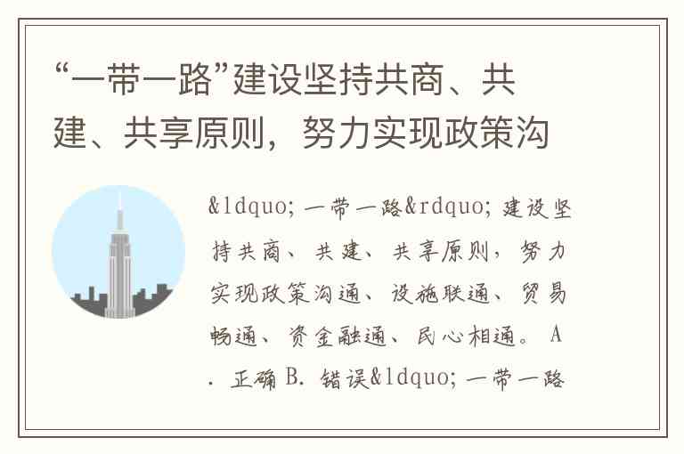 “一带一路”建设坚持共商、共建、共享原则,努力实现政策沟通、设施联通、贸易畅通、资金融通、民心相通。 A. 正确 B. 错误