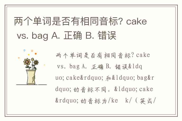 两个单词是否有相同音标? cake vs. bag A. 正确 B. 错误