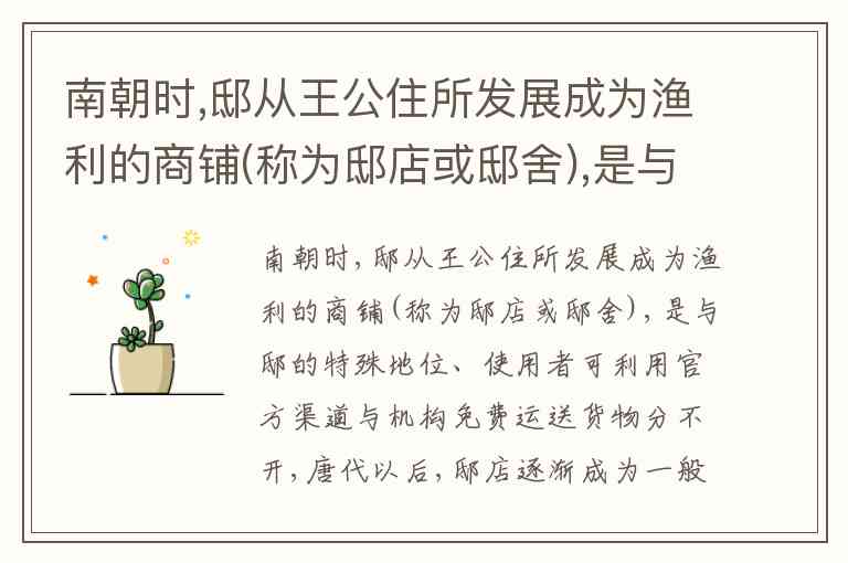 唐代邸店从特权阶层专属的贸易工具转变为普遍的商业设施,本质上反映了商品经济的繁荣发展。这种转变打破了南朝时期"邸"作为权贵货物中转站的垄断属性,演变为兼营仓储、旅舍、交易的多功能商业综合体,成为全国商品流转的核心节点。
