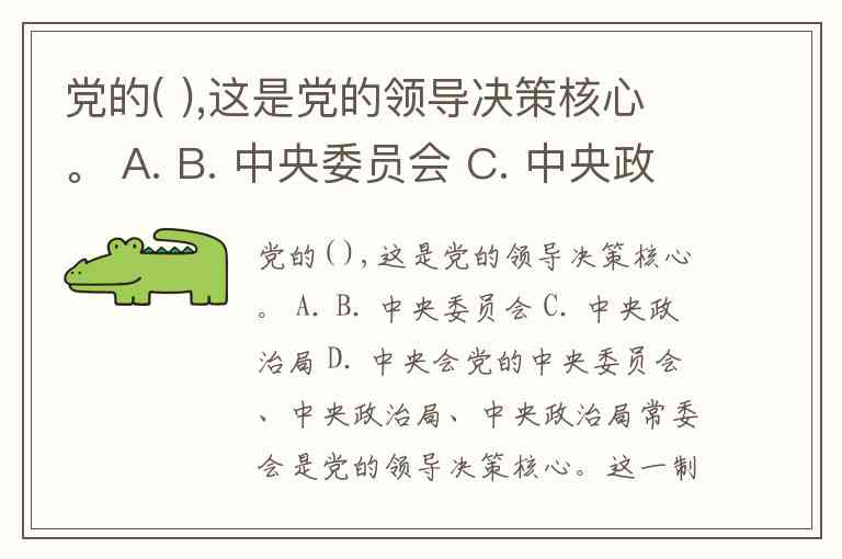 党的( ),这是党的领导决策核心。 A. B. 中央委员会 C. 中央政治局 D. 中央会