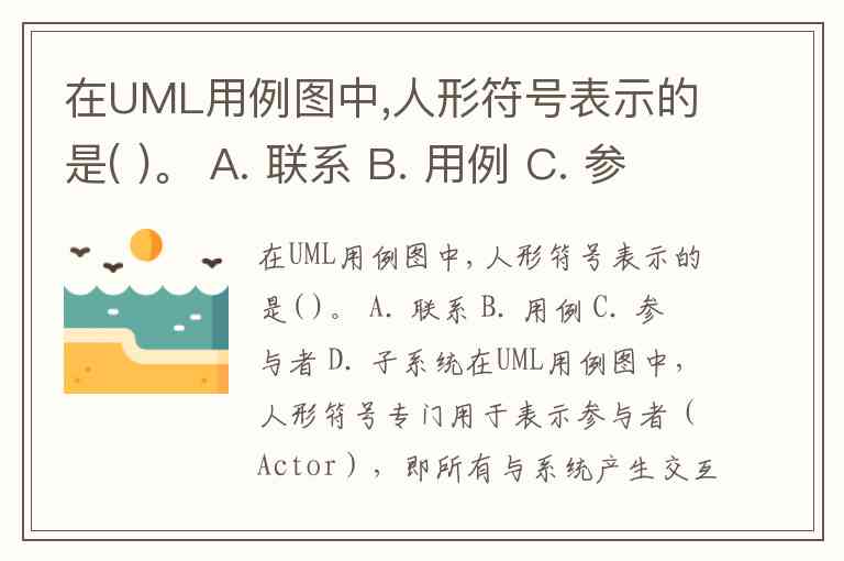 在UML用例图中,人形符号表示的是( )。 A. 联系 B. 用例 C. 参与者 D. 子系统