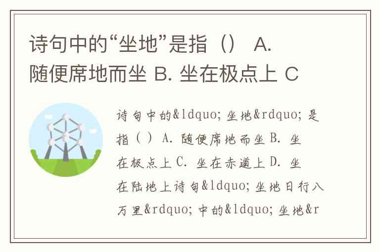 诗句中的“坐地”是指() A. 随便席地而坐 B. 坐在极点上 C. 坐在赤道上 D. 坐在陆地上