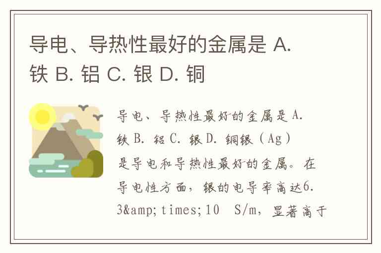 导电、导热性最好的金属是 A. 铁 B. 铝 C. 银 D. 铜