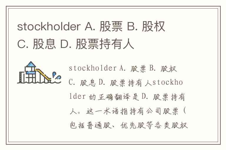 stockholder A. 股票 B. 股权 C. 股息 D. 股票持有人