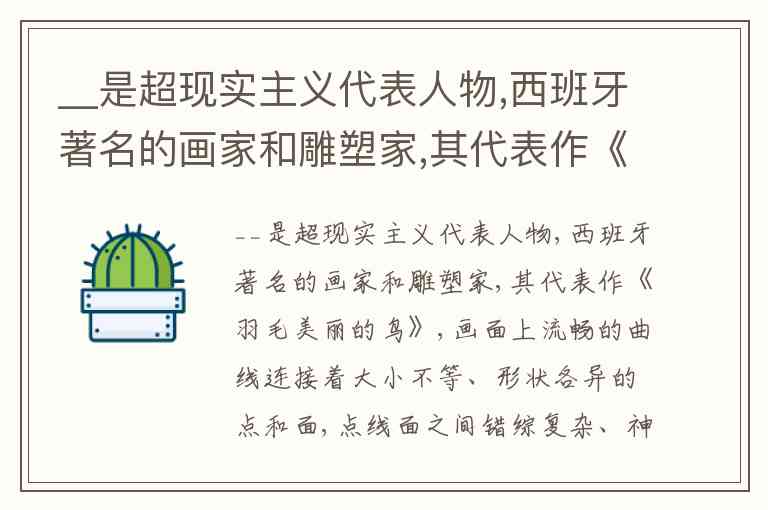 __是超现实主义代表人物,西班牙著名的画家和雕塑家,其代表作《羽毛美丽的鸟》,画面上流畅的曲线连接着大小不等、形状各异的点和面,点线面之间错综复杂、神秘莫测
