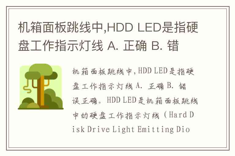 机箱面板跳线中,HDD LED是指硬盘工作指示灯线 A. 正确 B. 错误