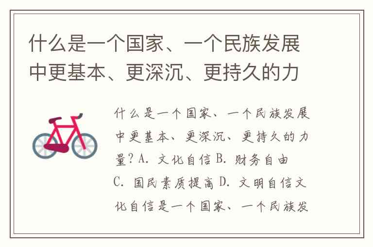 什么是一个国家、一个民族发展中更基本、更深沉、更持久的力量? A. 文化自信 B. 财务自由 C. 国民素质提高 D. 文明自信
