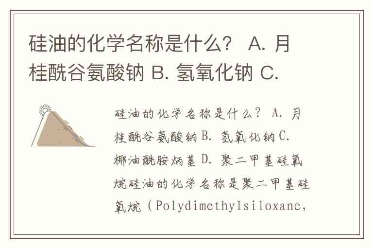 硅油的化学名称是什么? A. 月桂酰谷氨酸钠 B. 氢氧化钠 C. 椰油酰胺炳基 D. 聚二甲基硅氧烷