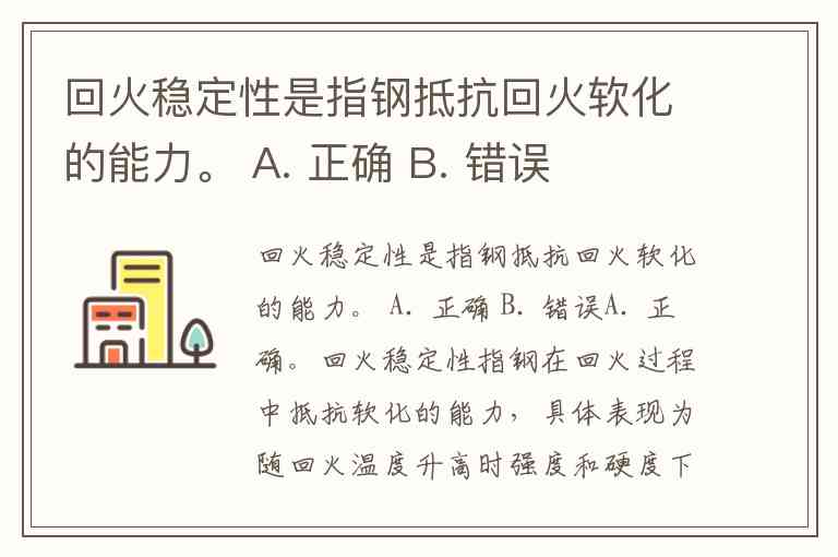 回火稳定性是指钢抵抗回火软化的能力。 A. 正确 B. 错误