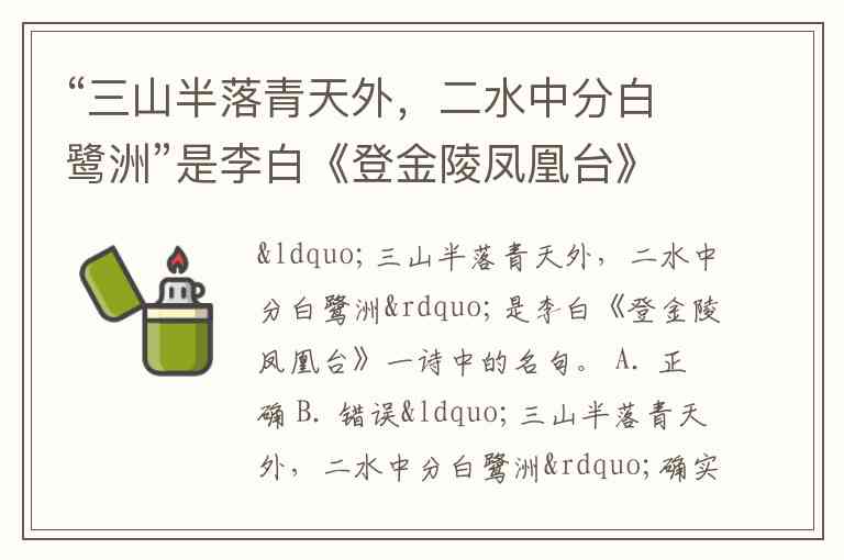 “三山半落青天外,二水中分白鹭洲”是李白《登金陵凤凰台》一诗中的名句。 A. 正确 B. 错误