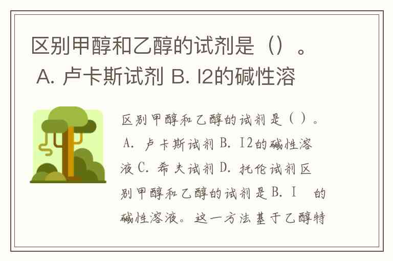 区别甲醇和乙醇的试剂是()。 A. 卢卡斯试剂 B. I2的碱性溶液 C. 希夫试剂 D. 托伦试剂