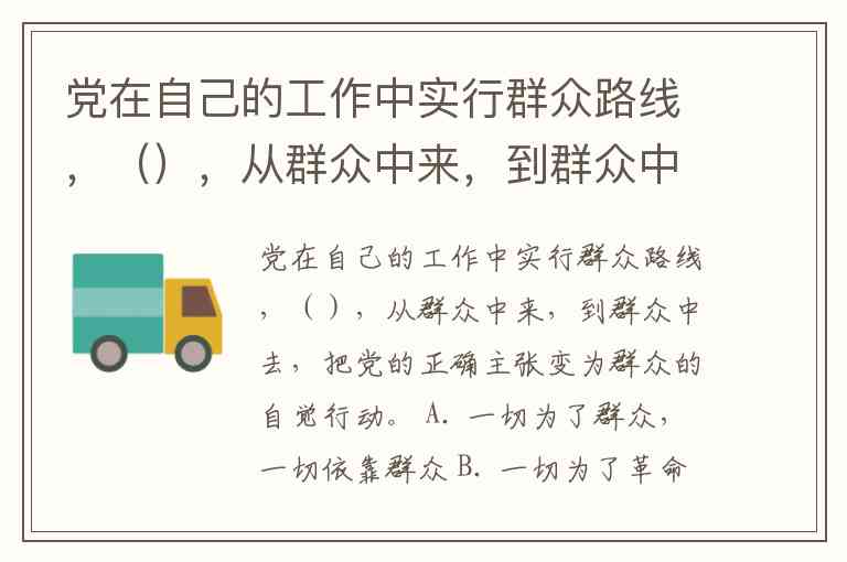 党在自己的工作中实行群众路线,(),从群众中来,到群众中去,把党的正确主张变为群众的自觉行动。 A. 一切为了群众,一切依靠群众 B. 一切为了革命,一切依靠群众 C. 一切为了建设,一切依靠群众