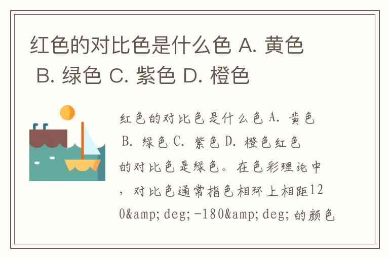 红色的对比色是什么色 A. 黄色 B. 绿色 C. 紫色 D. 橙色