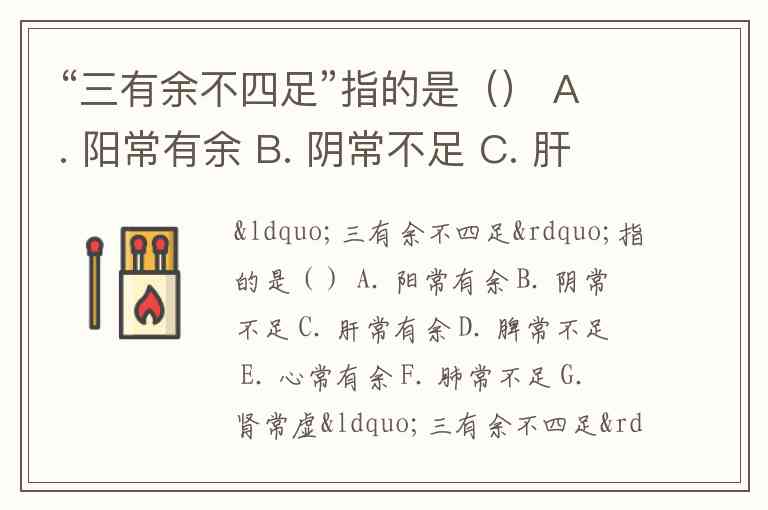 “三有余不四足”指的是() A. 阳常有余 B. 阴常不足 C. 肝常有余 D. 脾常不足 E. 心常有余 F. 肺常不足 G. 肾常虚