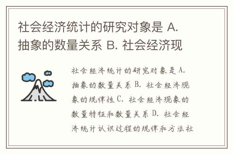 社会经济统计的研究对象是 A. 抽象的数量关系 B. 社会经济现象的规律性 C. 社会经济现象的数量特征和数量关系 D. 社会经济统计认识过程的规律和方法