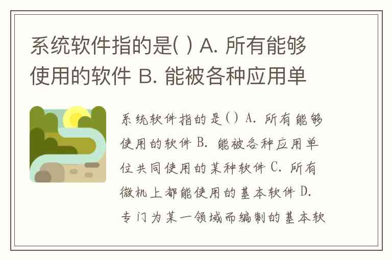 系统软件指的是( ) A. 所有能够使用的软件 B. 能被各种应用单位共同使用的某种软件 C. 所有微机上都能使用的基本软件 D. 专门为某一领域而编制的基本软件