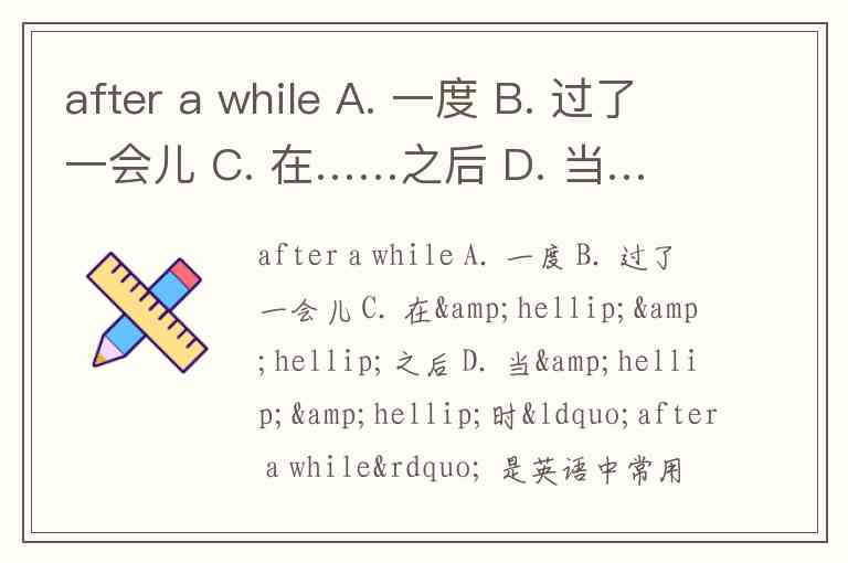after a while A. 一度 B. 过了一会儿 C. 在……之后 D. 当……时