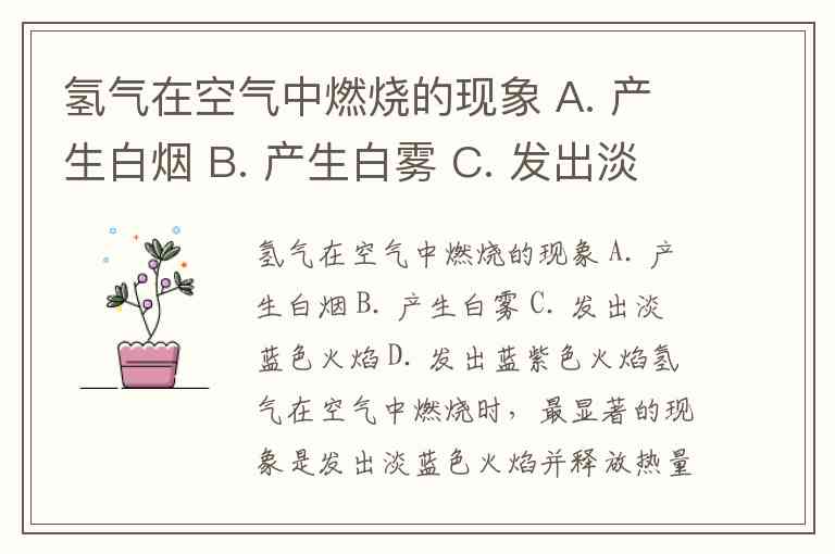 氢气在空气中燃烧的现象 A. 产生白烟 B. 产生白雾 C. 发出淡蓝色火焰 D. 发出蓝紫色火焰
