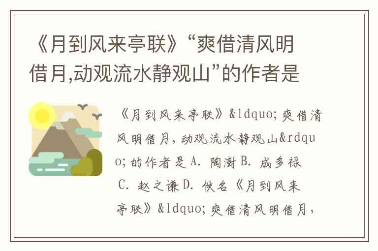《月到风来亭联》“爽借清风明借月,动观流水静观山”的作者是 A. 陶澍 B. 成多禄 C. 赵之谦 D. 佚名