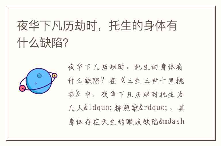 夜华下凡历劫时,托生的身体有什么缺陷?