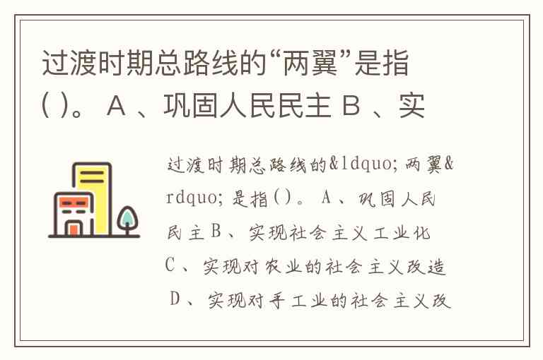 过渡时期总路线的“两翼”是指( )。 A 、巩固人民民主 B 、实现社会主义工业化 C 、实现对农业的社会主义改造 D 、实现对手工业的社会主义改造 E 、实现对资本主义工商业的社会主义改造 A. 巩固人民民主 B. 实现社会主义工业化 C. 实现对农业的社会主义改造 D. 实现对手工业的社会主义改造 E. 实现对资本主义工商业的社会主义改造
