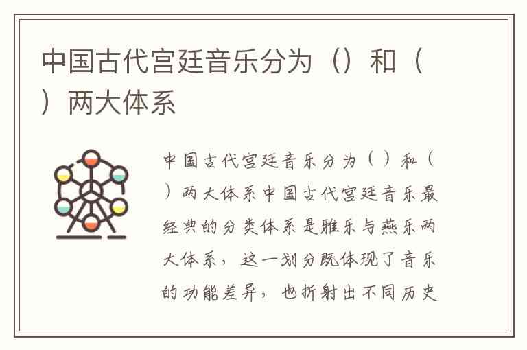 中国古代宫廷音乐最经典的分类体系是雅乐与燕乐两大体系,这一划分既体现了音乐的功能差异,也折射出不同历史时期的文化特征。