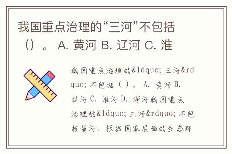 我国重点治理的“三河”不包括()。 A. 黄河 B. 辽河 C. 淮河 D. 海河